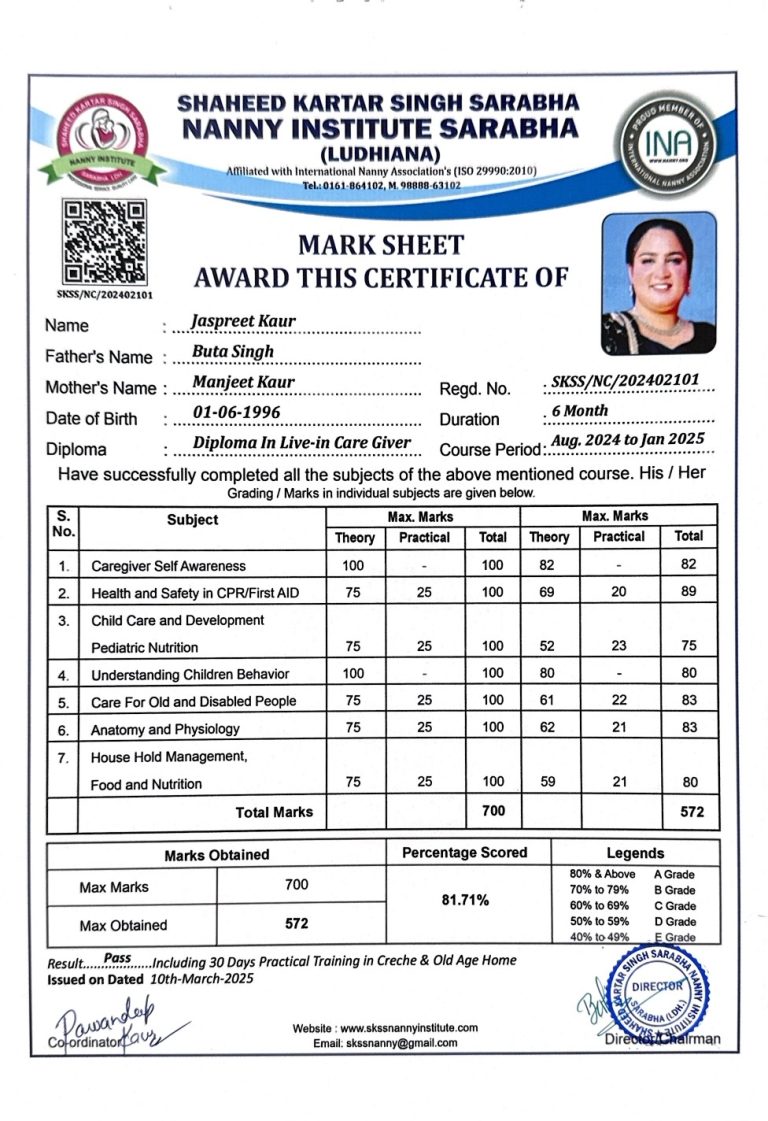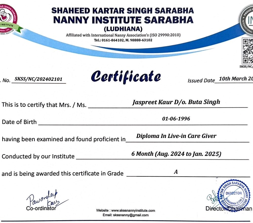 Reg.No. skss/nc/202402101 Name : jaspreet kaur father’s name :- buta singh mother’s name :- manjeet kaur